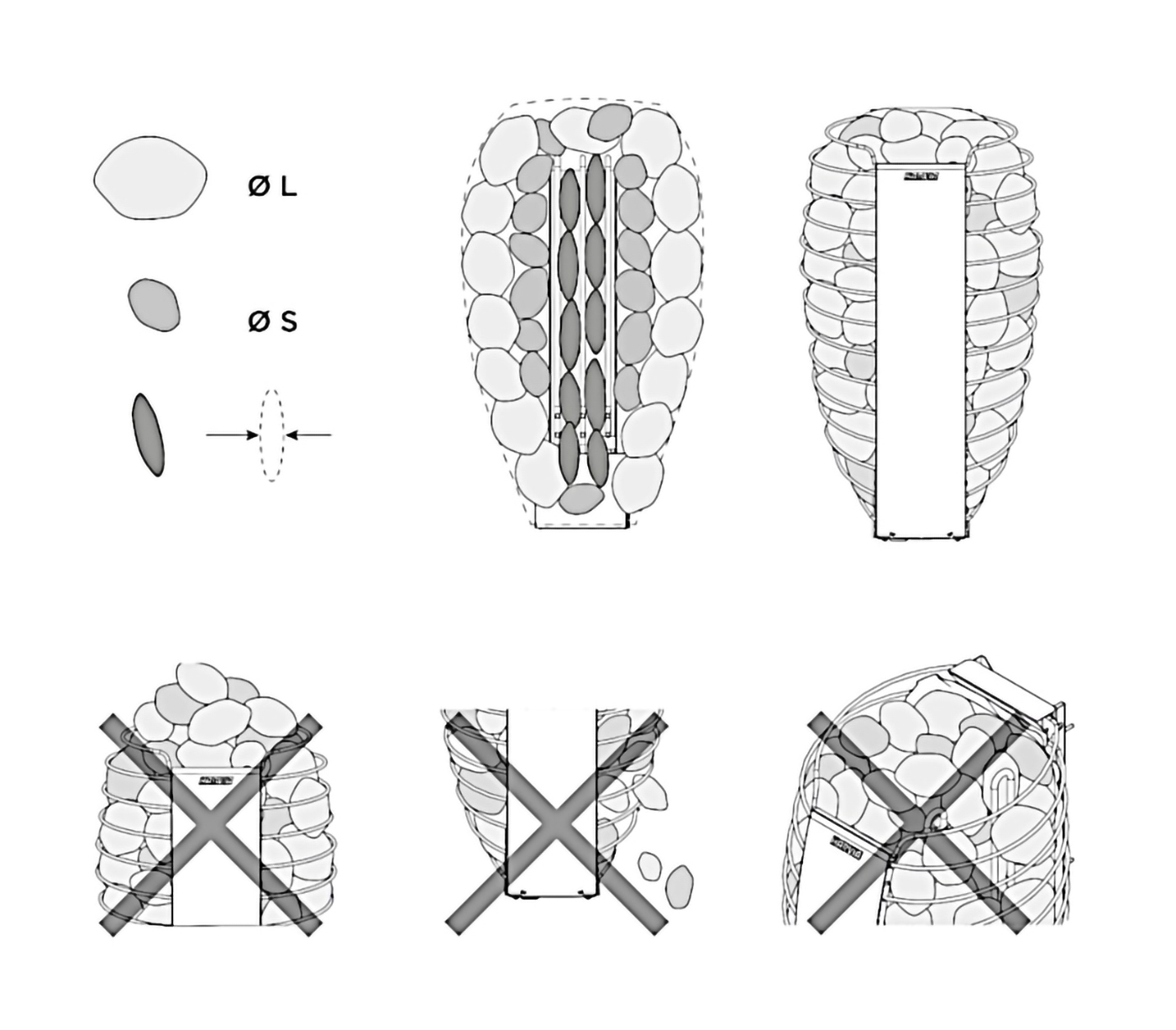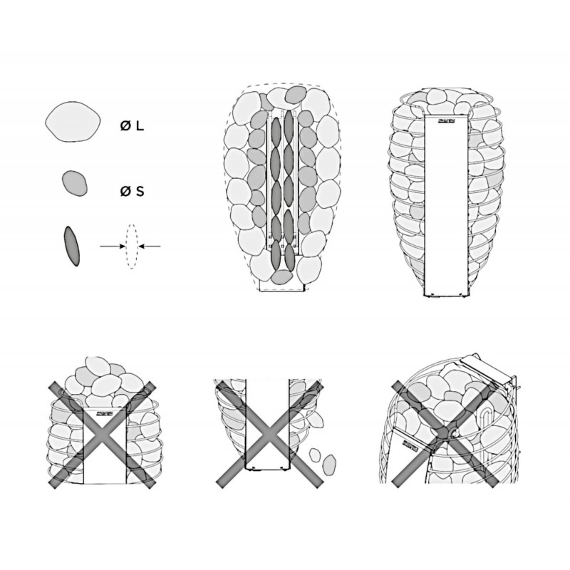 Spirit Поскольку с печью Spirit рекомендуется использовать камни только округлой формы, без поверхностных сколов, мы включили в комплект подходящие камни.