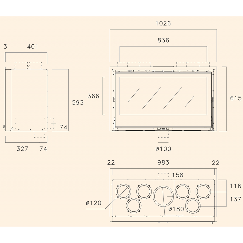 - Диаметр дымохода:180 мм