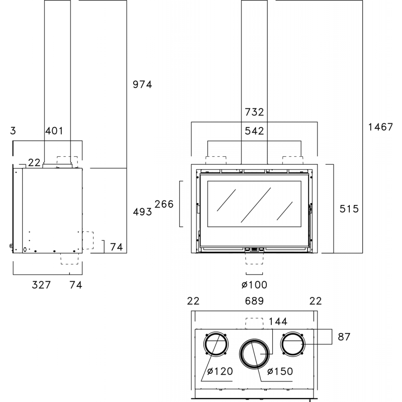 | Высота | 515 мм- без трубы 1467 мм - с трубой |