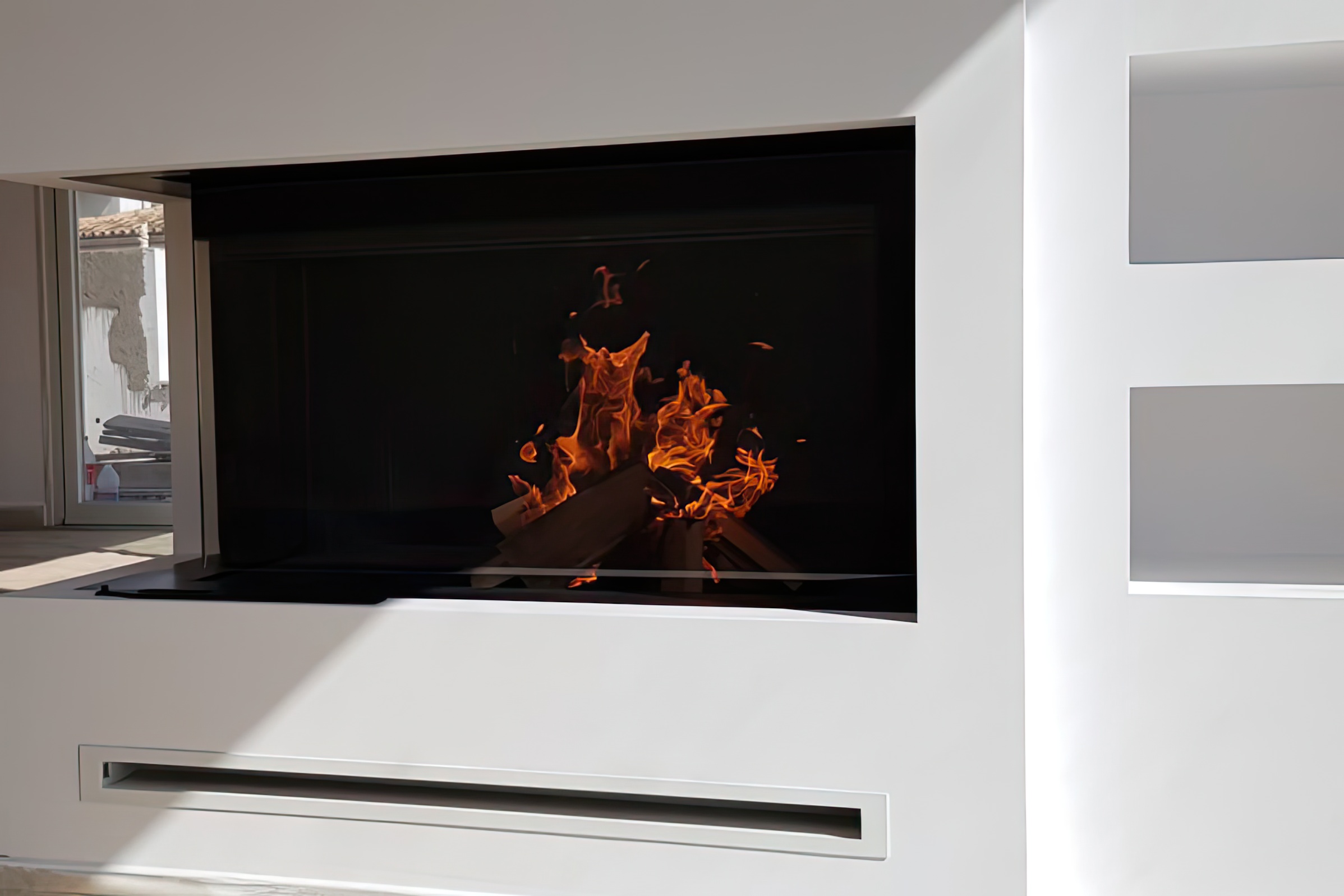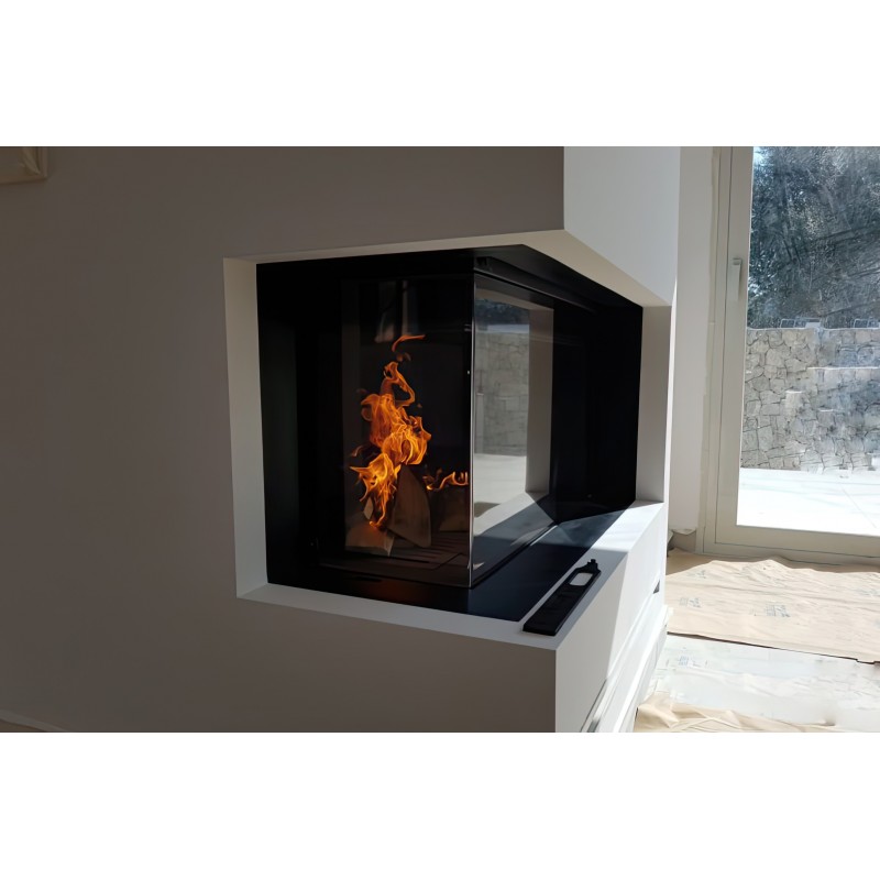 Если вы планируете купить каминную топку серии Diamond, вы выбираете премиальный комфорт. Модель оснащена бесшумным подъемным механизмом дверцы, который позволяет наслаждаться как закрытым, так и открытым пламенем. Отсутствие видимой рамы на стыке стекол делает конструкцию визуально легкой, превращая камин в стильное окно в мир тепла и спокойствия.