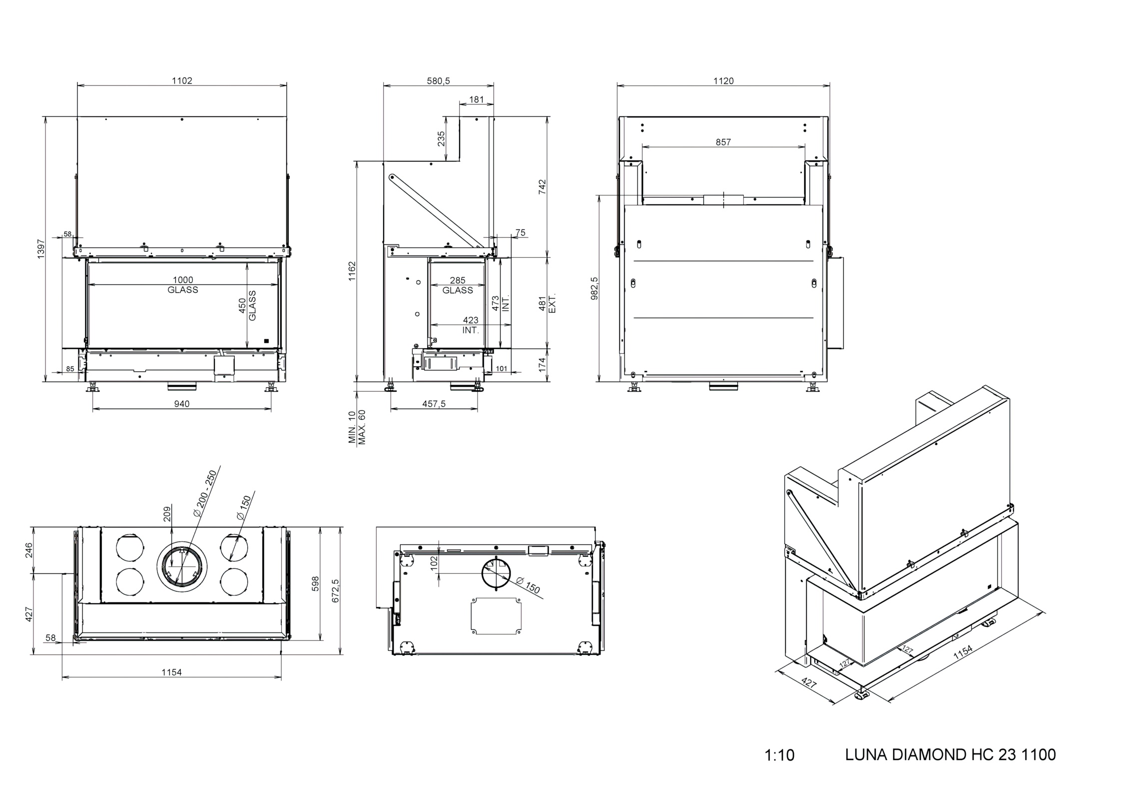 Встраиваемая каминная топка M-Design Luna 1100 CL/CR Diamond