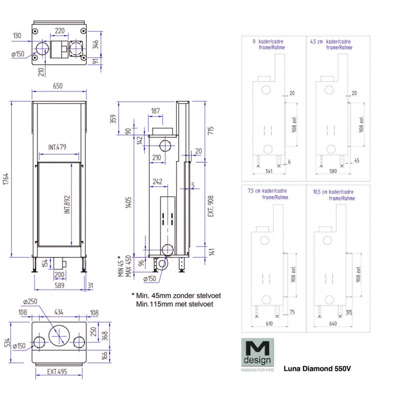 Каминная топка M-Design Luna 550 V Diamond Plus
