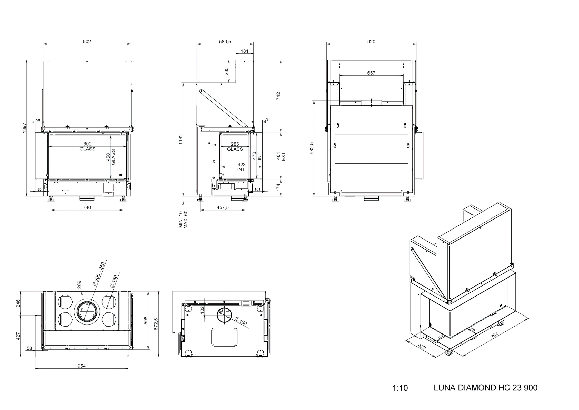 | Размер стекла | 800 x 450 x 285 мм |