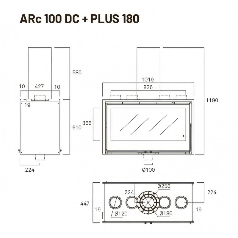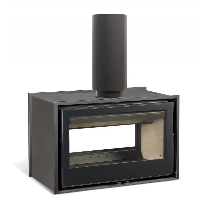 Каминная топка Rocal ARc 100 DC — это двусторонняя (туннельная) модель испанского производителя Rocal с шириной около 1 м, предназначенная для установки в перегородках и обогрева помещений до 300–450 м³ в Минске или других регионах Беларуси. Она работает на дровах, имеет стальной корпус с футеровкой из вермикулита, сквозное прямое остекление и боковое открывание двери (реверсивное, влево/вправо).