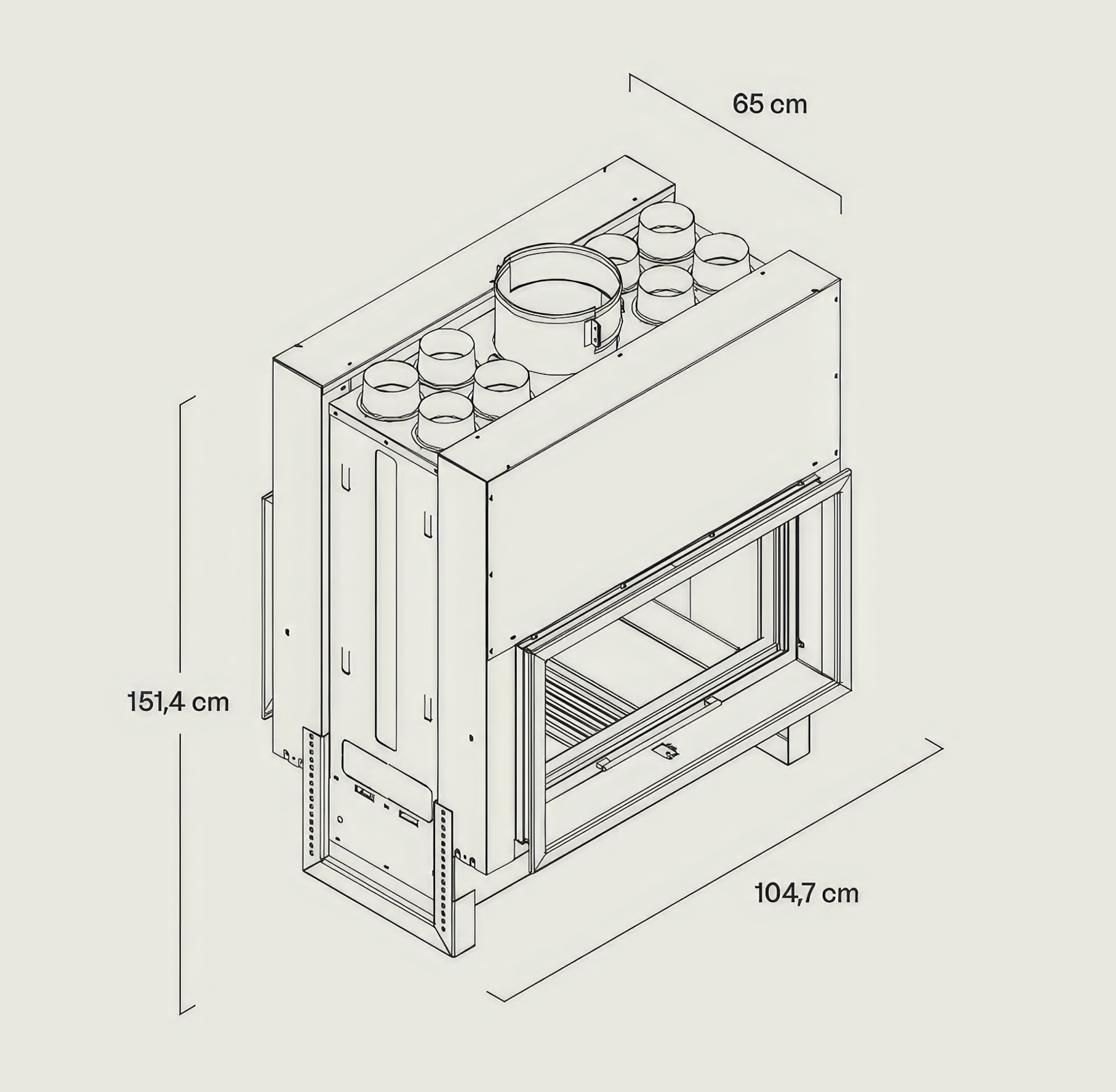 Топка выполнена из прочной стали, оснащена системой вторичного дожига и функцией «чистое стекло», что гарантирует экономичный расход топлива и минимальное загрязнение. Гильотинный механизм дверцы обеспечивает удобство эксплуатации, а жаропрочная футеровка внутри корпуса повышает теплоаккумуляцию и долговечность. Все элементы конструкции разработаны с учётом современных требований к безопасности и комфорту.