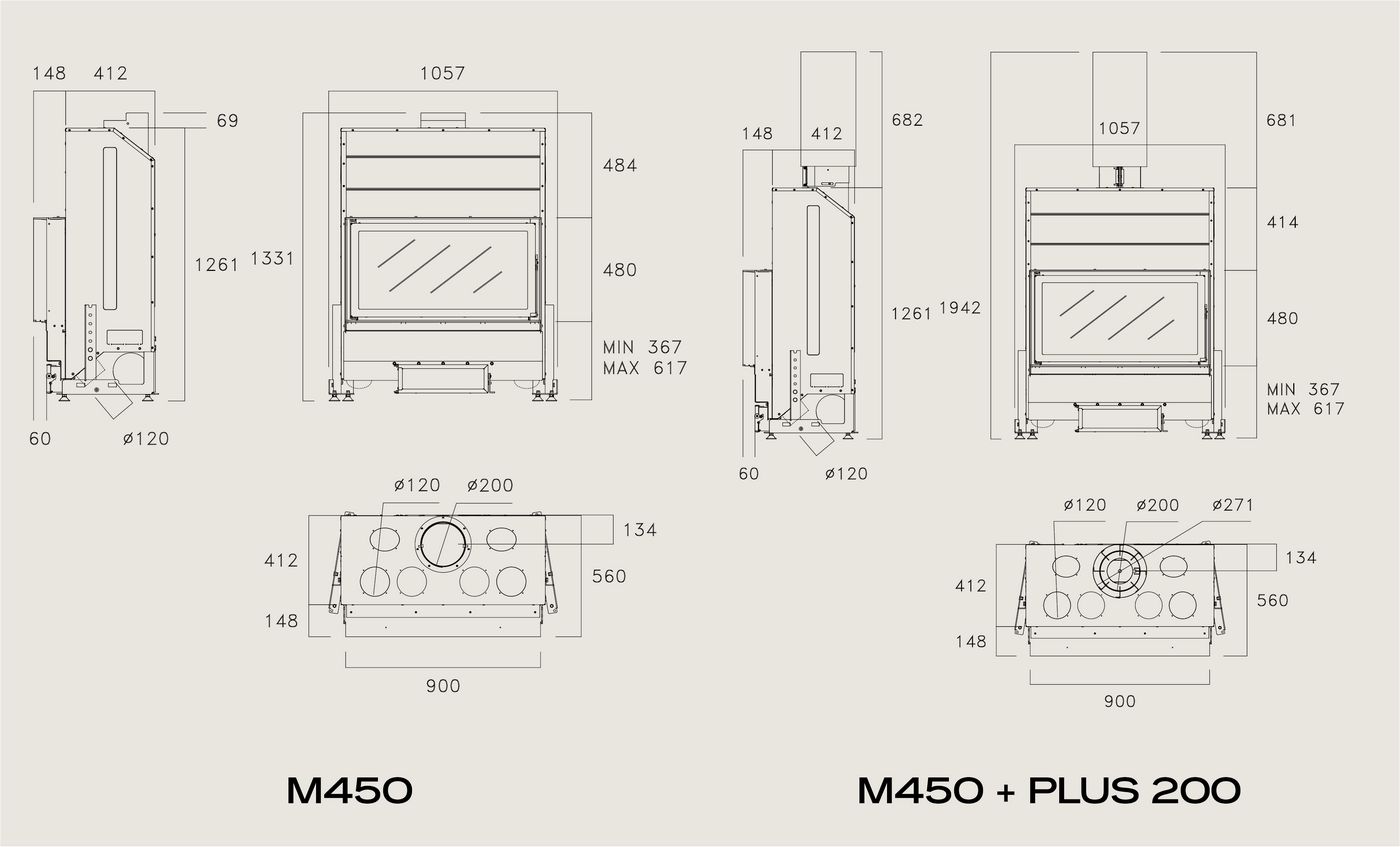 Rocal M450 — это современная каминная топка из серии M2120, сочетающая в себе высокую мощность, стильный дизайн и экологичность. Благодаря номинальной мощности 15 кВт и КПД 78%, модель способна эффективно обогреть до 190 м² жилой площади, обеспечивая уют и тепло даже в просторных помещениях. Топка соответствует европейскому стандарту Ecodesign 2022, имеет класс энергоэффективности A и сертификацию UNE EN-13229, что гарантирует её безопасность и экологичность.