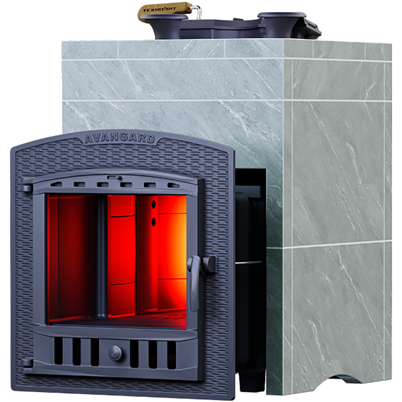 Полностью чугунная закрытая каменка печи Авангард - является основным парообразователем. Она раскаляется до 900 градусов и при попадании на неё воды способна бесконечно давать большой объем мелкодисперсного легкого пара. За счет толщины стенок в 60 мм обладает повышенной теплоёмкостью и непревзойденной надежностью. Закрытая каменка печи Аванград снабжена 2 воронками с подачей воды на разные уровни, а также клапаном выхода пара на дверке. Теперь не нужно открывать дверцу чтобы получить новую порцию мелкодисперсного пара.