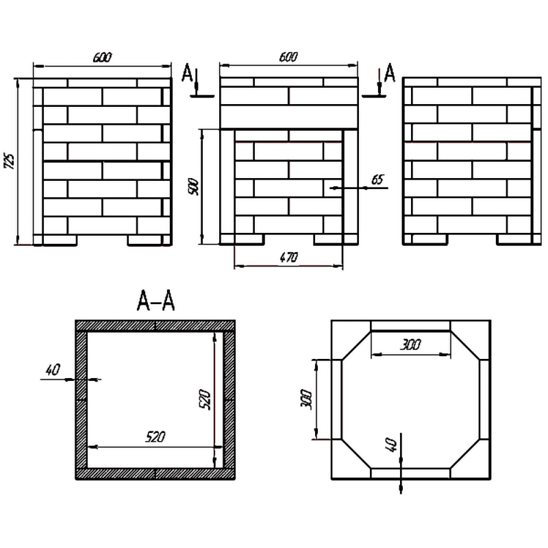 Под каменкой на 4-х упорах установлен рассекатель пламени, он разделяет пламя на 3 потока и направляет сначала на боковые части корпуса для интенсивного нагрева стенок и конвекционного нагрева воздуха в парной. Для этого на наружных поверхностях расположены конвекционные рёбра. Дальше пламя проходит через выступы к выходу в дымоход, нагревая каменку.