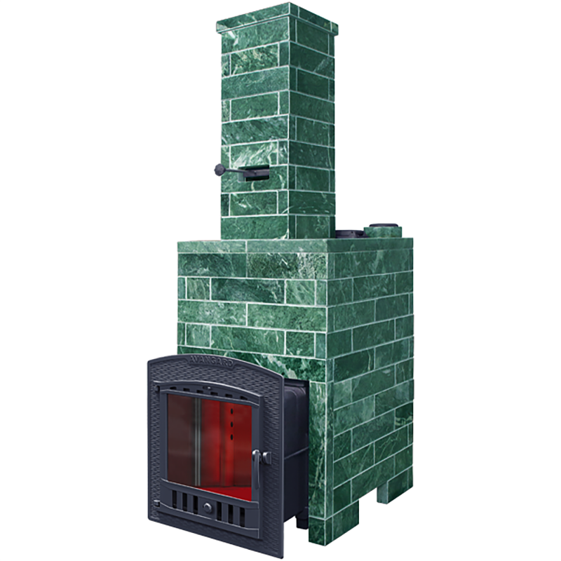 Облицовка из кирпичиков змеевика - это простой и эффективный способ создать режим русской бани. Облицовка представляет собой плитки зелёного камня с краями, обработанными фаской. Из-за этих краёв облицовка имеет чёткий рисунок, который полностью имитирует настоящую кирпичную кладку. Эта облицовка также, как и облицовка из классического кирпича, останавливает жёсткое инфракрасное излучение и конвекцию, легко собирается/разбирается и не требует никаких специальных навыков при сборке.