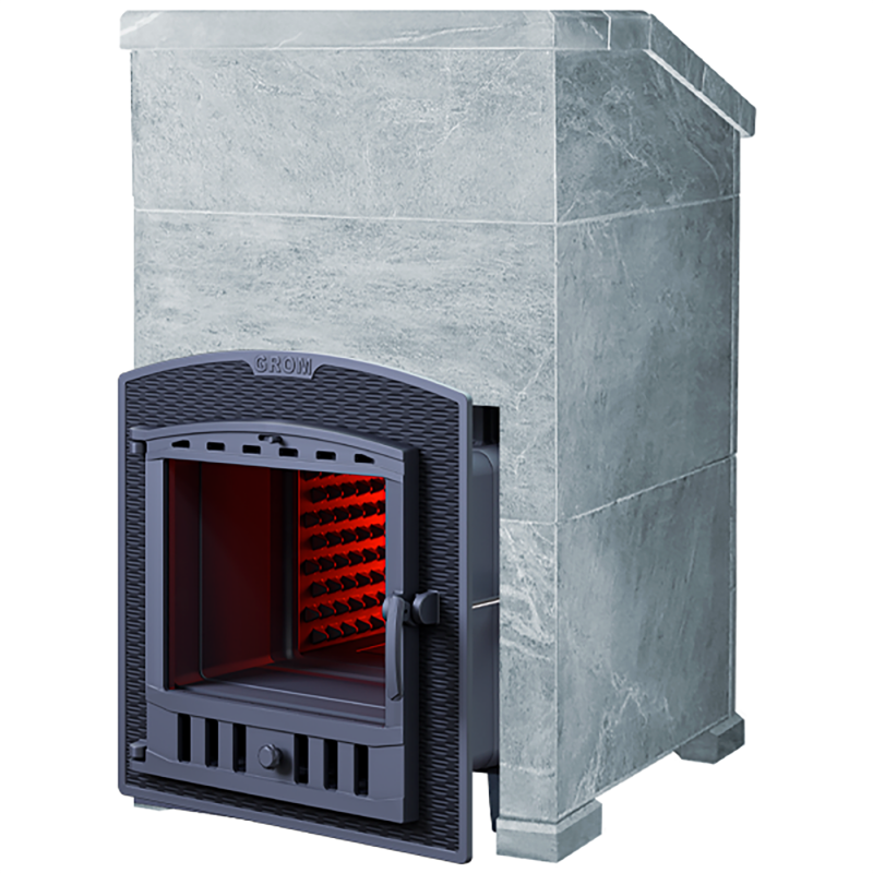 Печь Гром с уникальной каменкой прямого нагрева для получения легкого мелкодисперсного пара, необходимого для режима русской бани. Благодаря инновационной конструкции, печь гарантированно входит в режим за 60 минут.