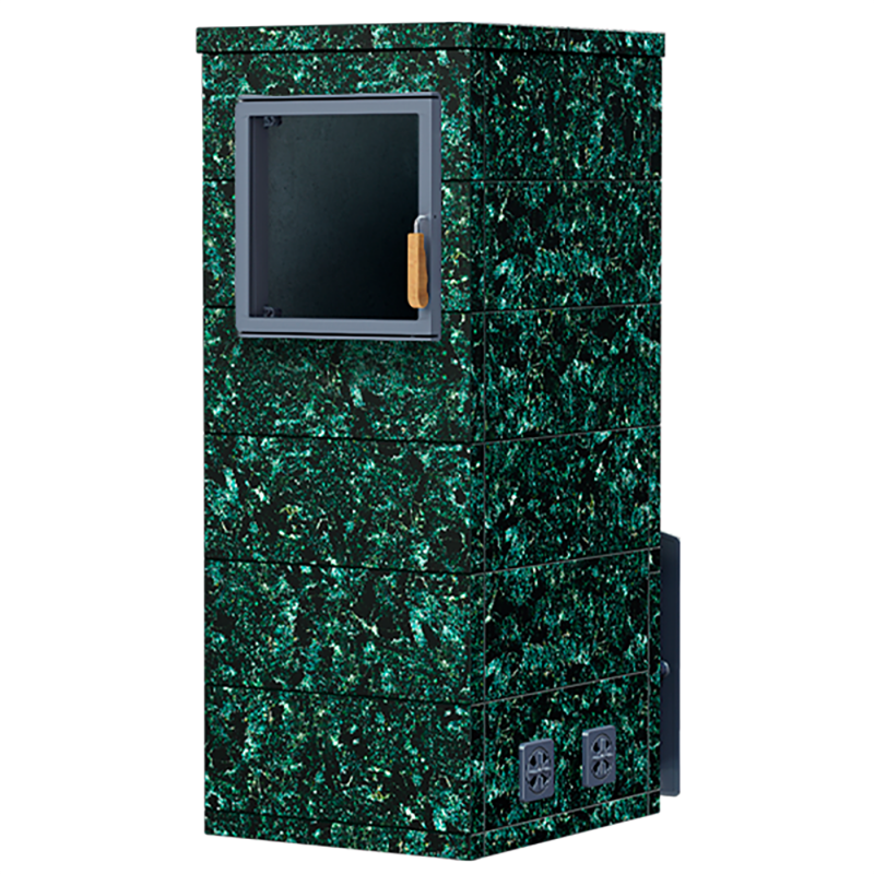 Не имеющая аналогов каменка толщиной 45 мм обеспечивает непревзойденную надежность и высокую теплоемкость, 120 теплосъемных шипов по всей её поверхности, позволяют каменке нагреться за 60 минут до 700 градусов и долгое время удерживать тепло.