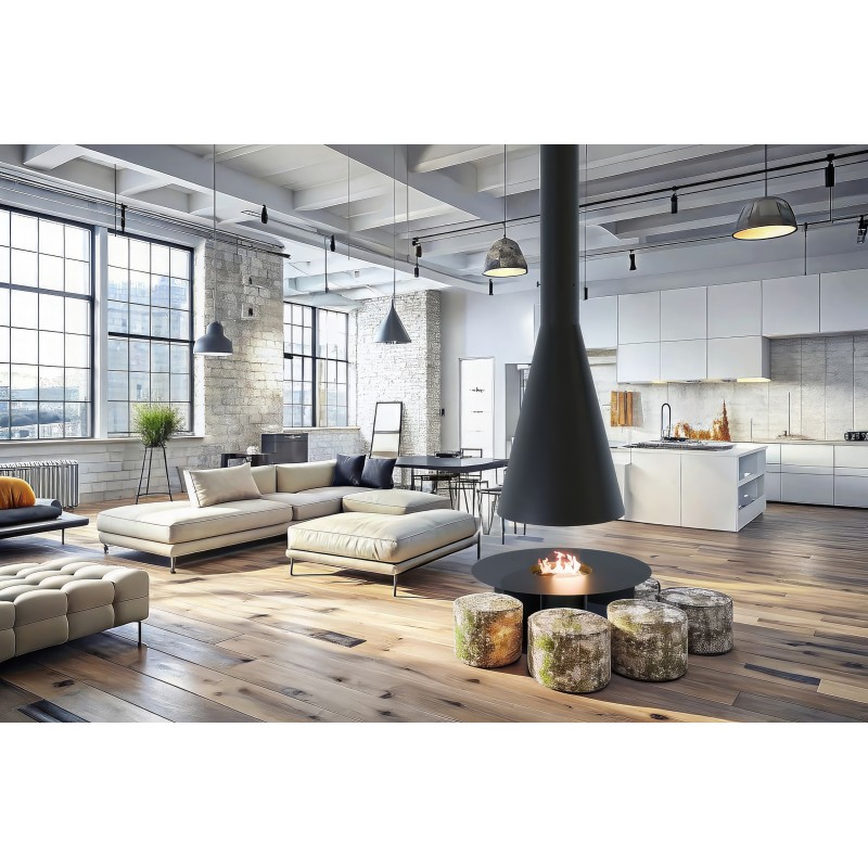 AVES 4 Милан — подвесной островной камин с уникальной формой перевёрнутой воронки, вдохновлённой культовой моделью голландского дизайнера Гарри Болея. Благодаря сквозному обзору пламени и эффекту «парящей» конструкции, камин визуально облегчает пространство и становится центральным элементом интерьера. Идеален для зонирования помещений, оформления гостиных, лаунж-зон и коммерческих пространств. Современный стиль, безопасность и эстетика — всё в одном решении.