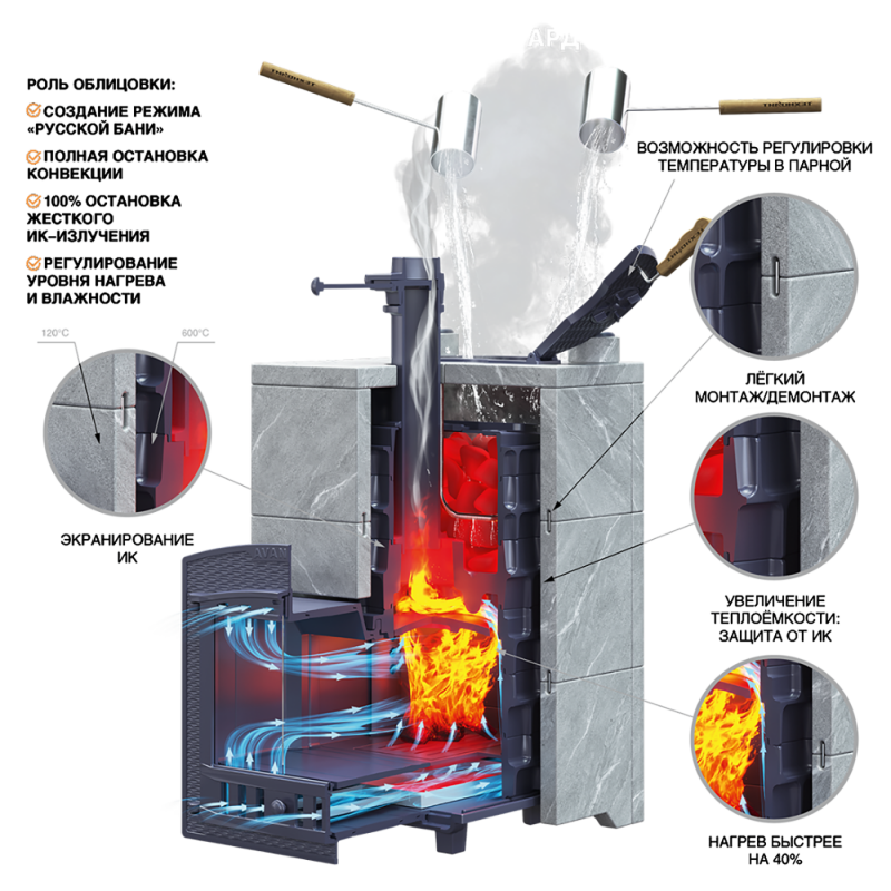 Печь AVANGARD ЗК 40 (П2) - новый концепт чугунной теплонакопительной банной печи с прямым нагревом заряда.