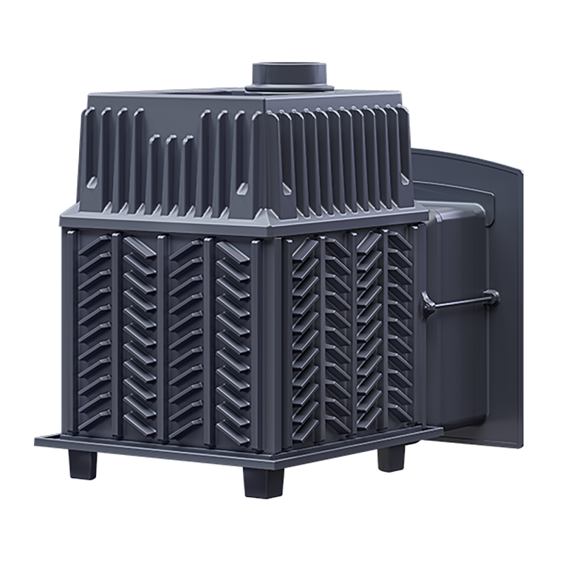 Пирамидальные шипы, расположенные внутри топки на боковых стенках способствуют эффективному горению дров и увеличивают площадь теплопередачи на 80%, что позволяет печи более динамично войти в режим.