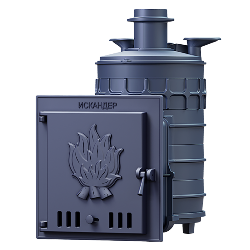 Искандер 25 - чугунная банная печь с прямым нагревом парообразователя. Печь со стенками толщиной 14 мм. Быстро нагревает воздух в парной и производит качественный мелкодисперсный пар за счёт теплоёмкой каменки, оснащённой теплосъёмными шипами на нижней поверхности.