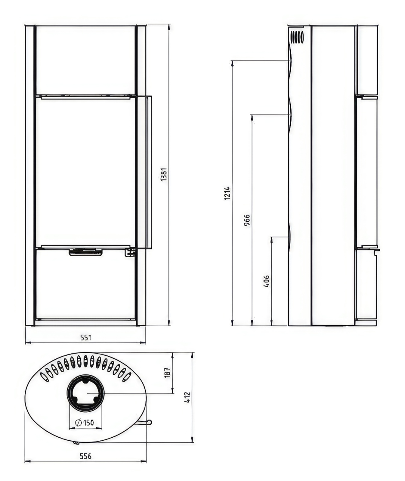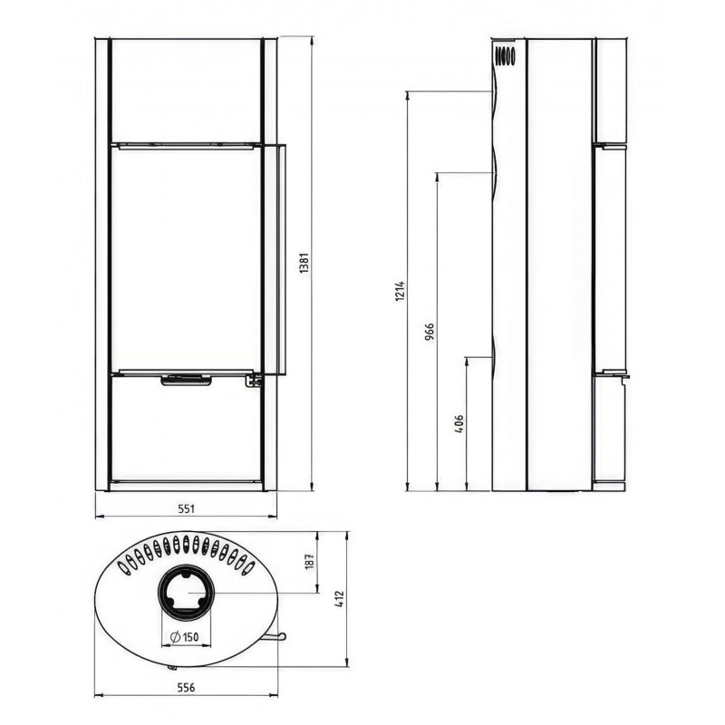 - Диаметр дымохода:150 мм