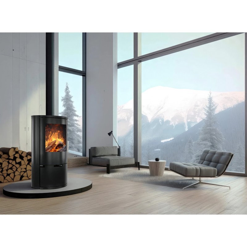 - Максимальная эффективность: КПД 82% гарантирует, что большая часть энергии сгорания дров превращается в полезное тепло, а не улетает в трубу.