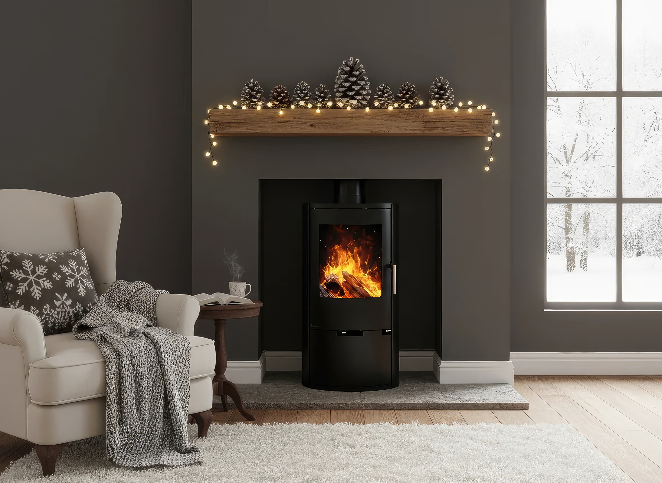 Корпус выполнен из котловой стали с термостойким покрытием. Топка футерована вермикулитом высокой плотности, что обеспечивает чистое сгорание и защищает сталь от прямого воздействия огня. Модель поддерживает подключение внешнего воздуха (CPV), что критически важно для домов с принудительной вентиляцией или высокой герметичностью.