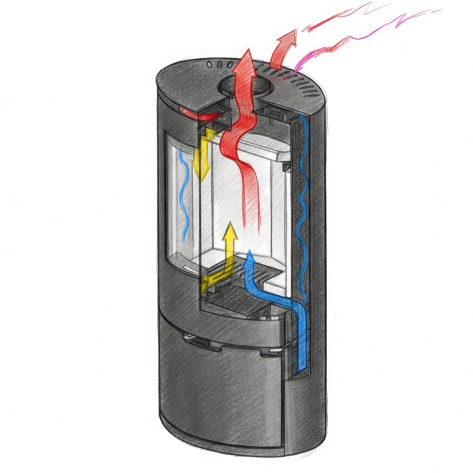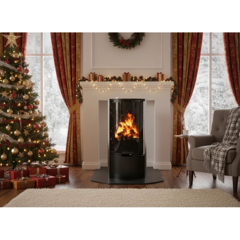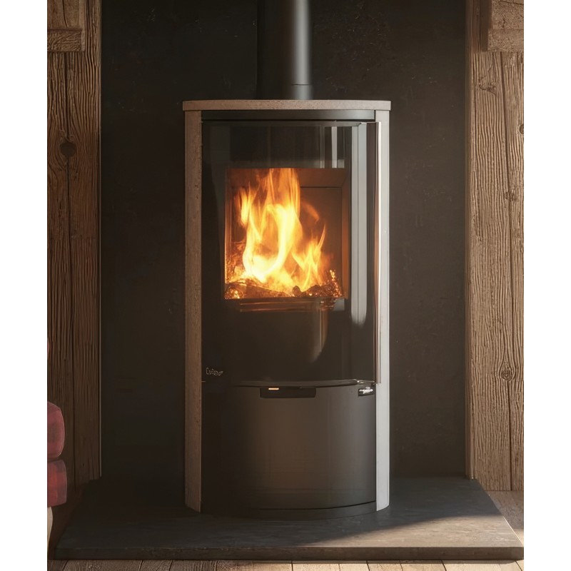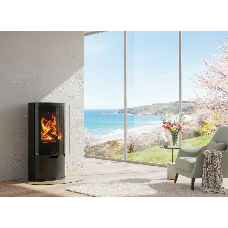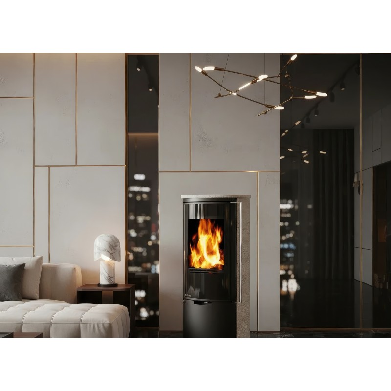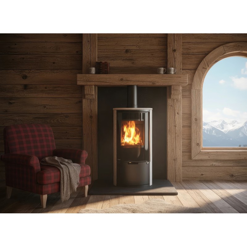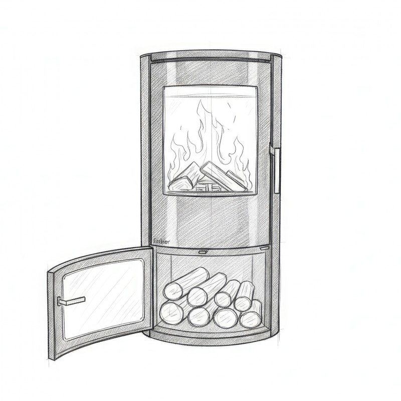 Внутренняя облицовка из вермикулита высокой плотности защищает стальной корпус и способствует самоочистке стекла за счет высокой температуры в камере. В нижней части печи расположена открытая дровница, которая не только удобна в эксплуатации, но и дополняет уютный образ дровяного камина.