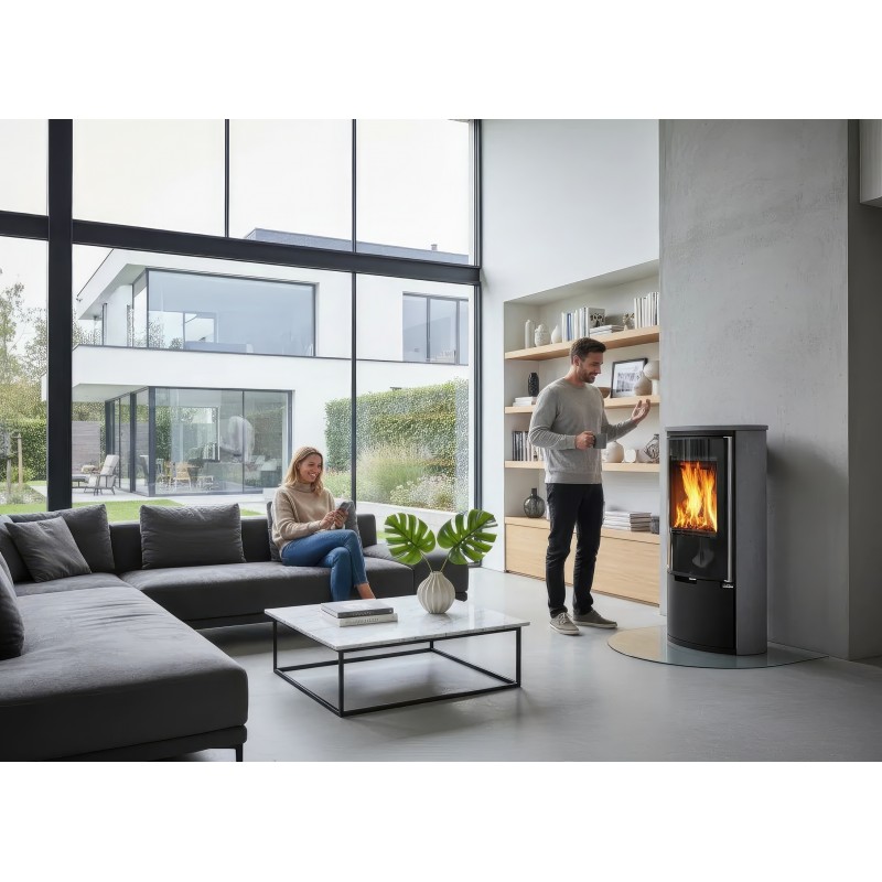 - Высокая мощность до 8 кВт: Увеличенная высота корпуса (более 1.1 м) и объемная топка позволяют эффективно отапливать просторные загородные дома.