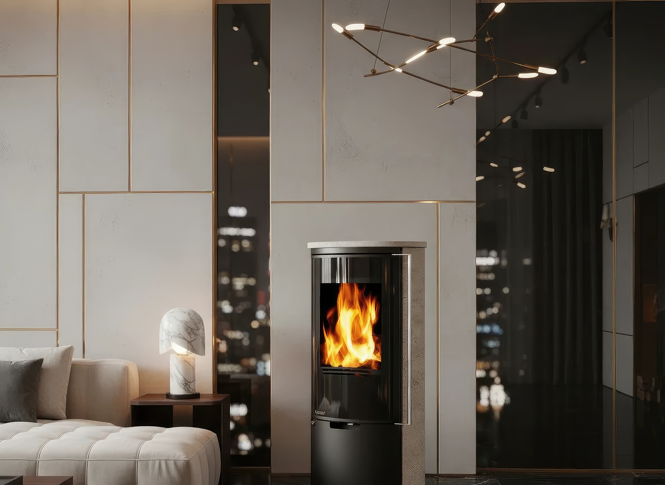 Живой огонь создаёт атмосферу уюта и спокойствия. Печь станет не только источником тепла, но и стильным центром интерьера вашей гостиной.
