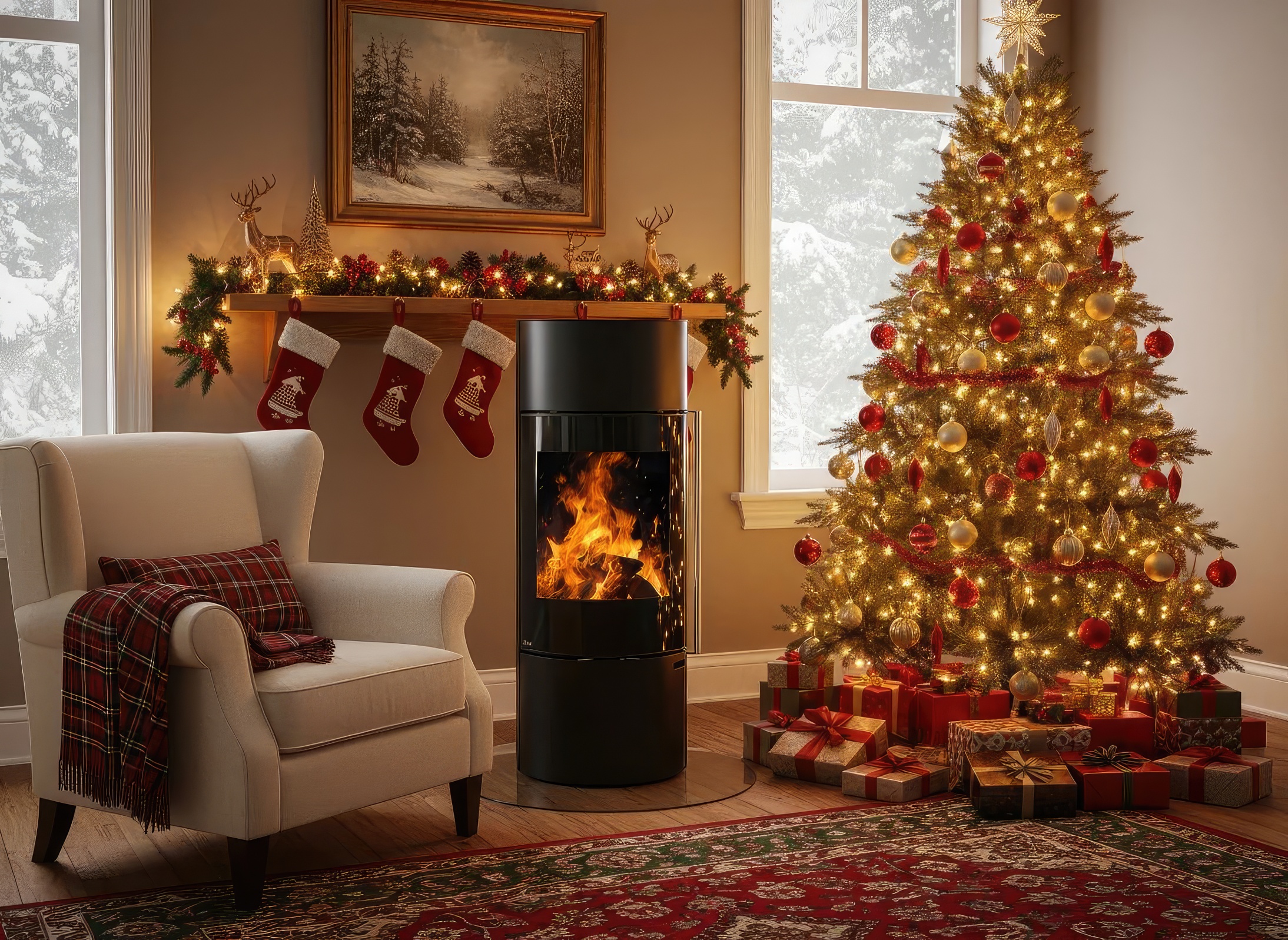 - Дизайн на стойке: Отсутствие массивного основания делает печь идеальной для небольших помещений или минималистичных гостиных, не загромождая пол.