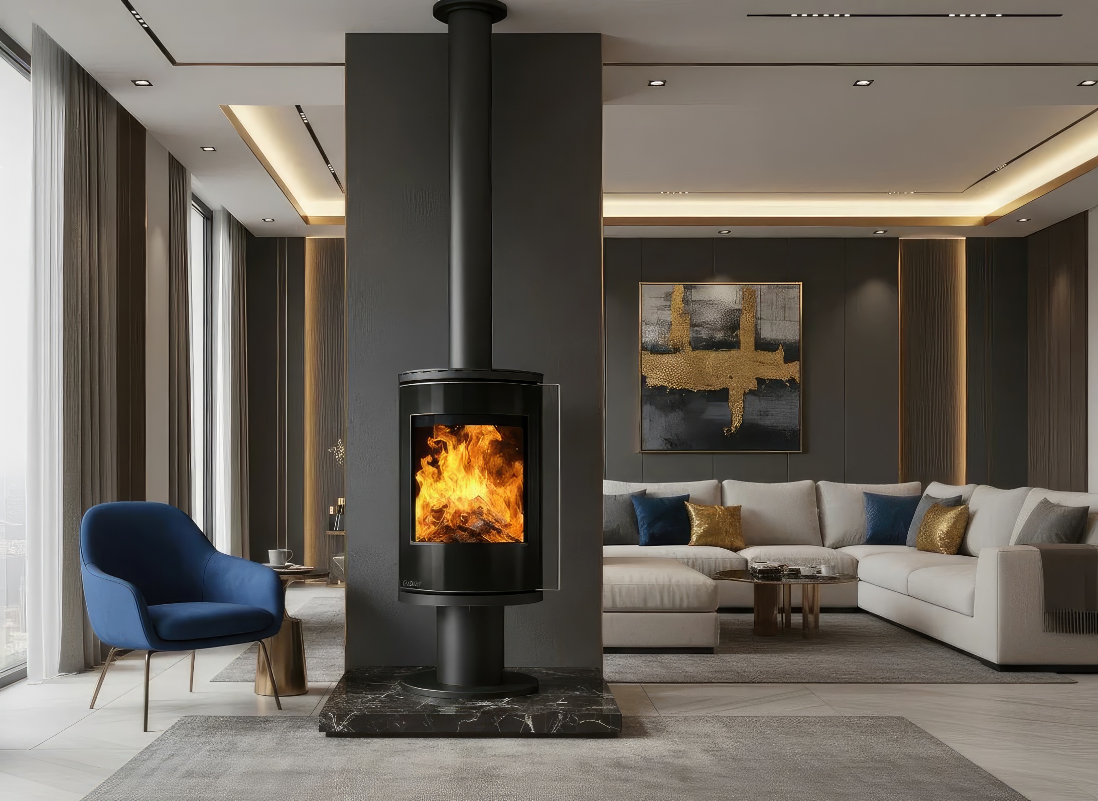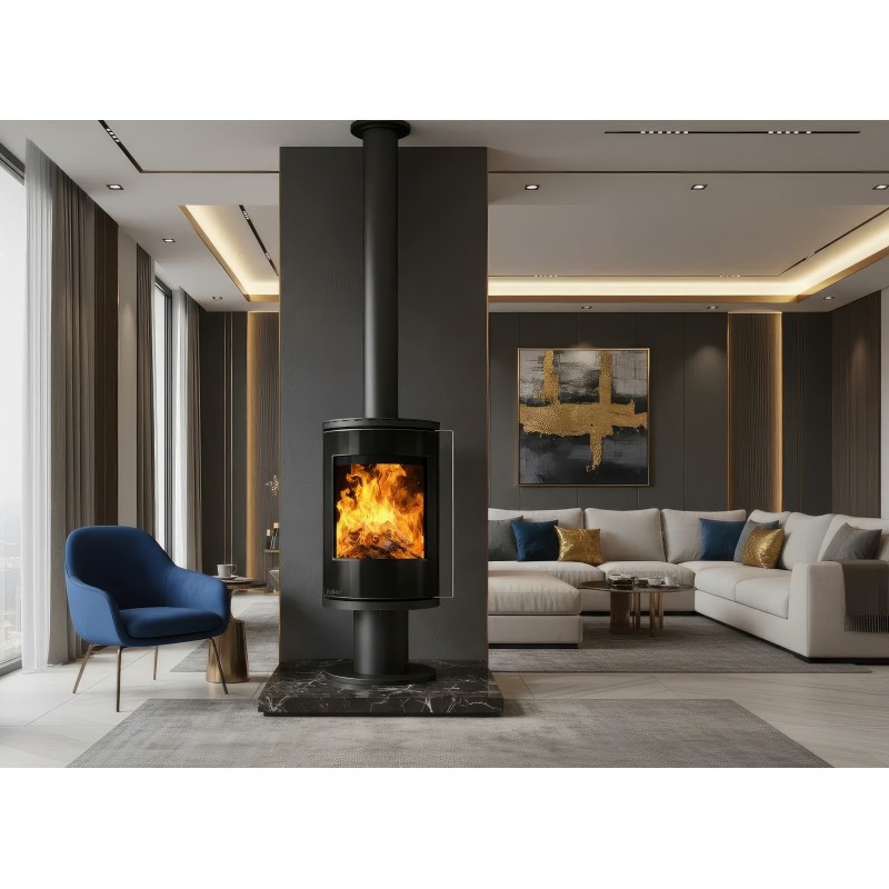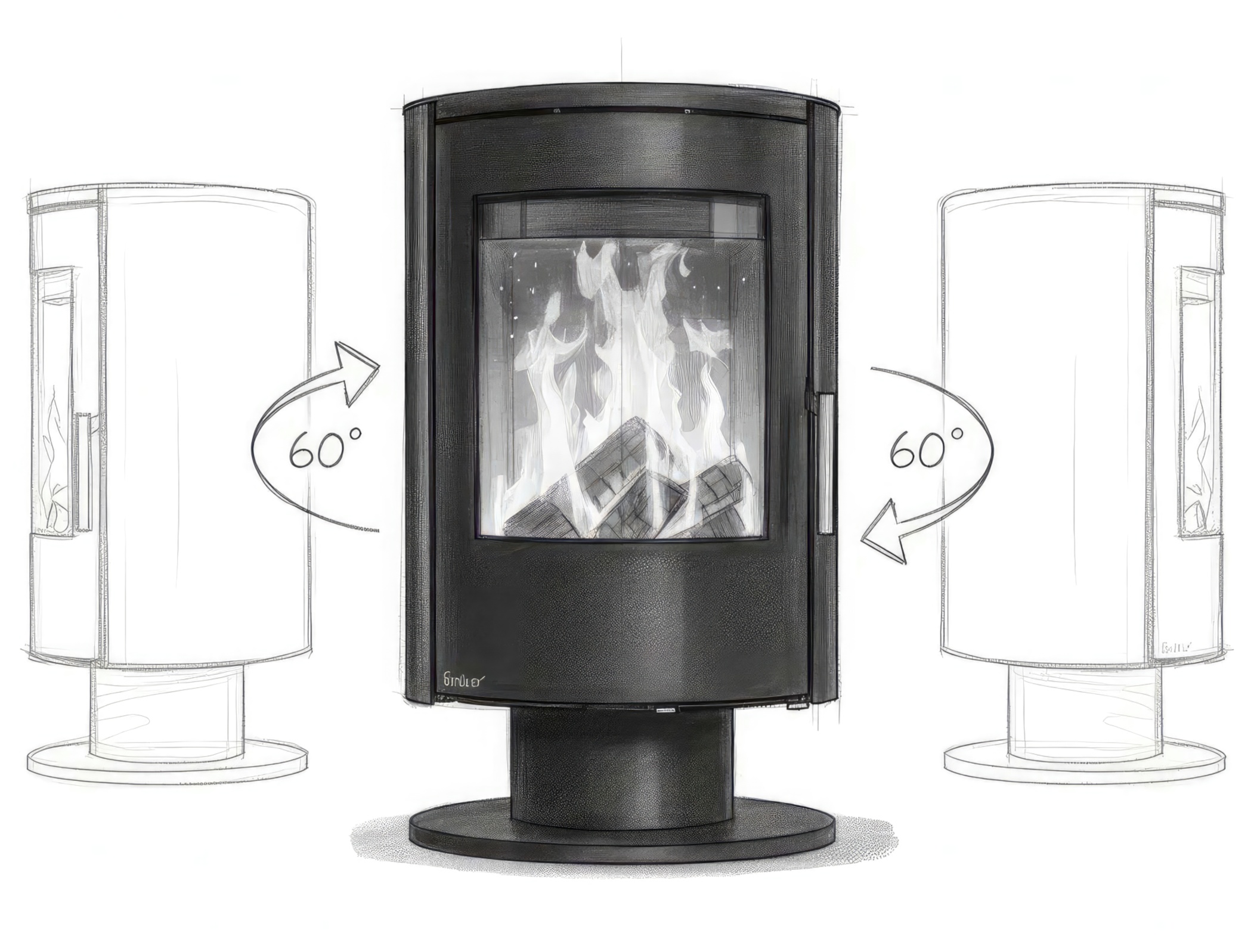 Печь-камин Ember F16 FG — это воплощение концепции "умного" уюта. Модель установлена на поворотную центральную стойку, что позволяет вращать корпус печи на 360 градусов. Теперь вам не нужно подстраивать интерьер под камин — камин сам подстроится под вас, направляя тепло и свет пламени туда, где вы находитесь в данный момент.