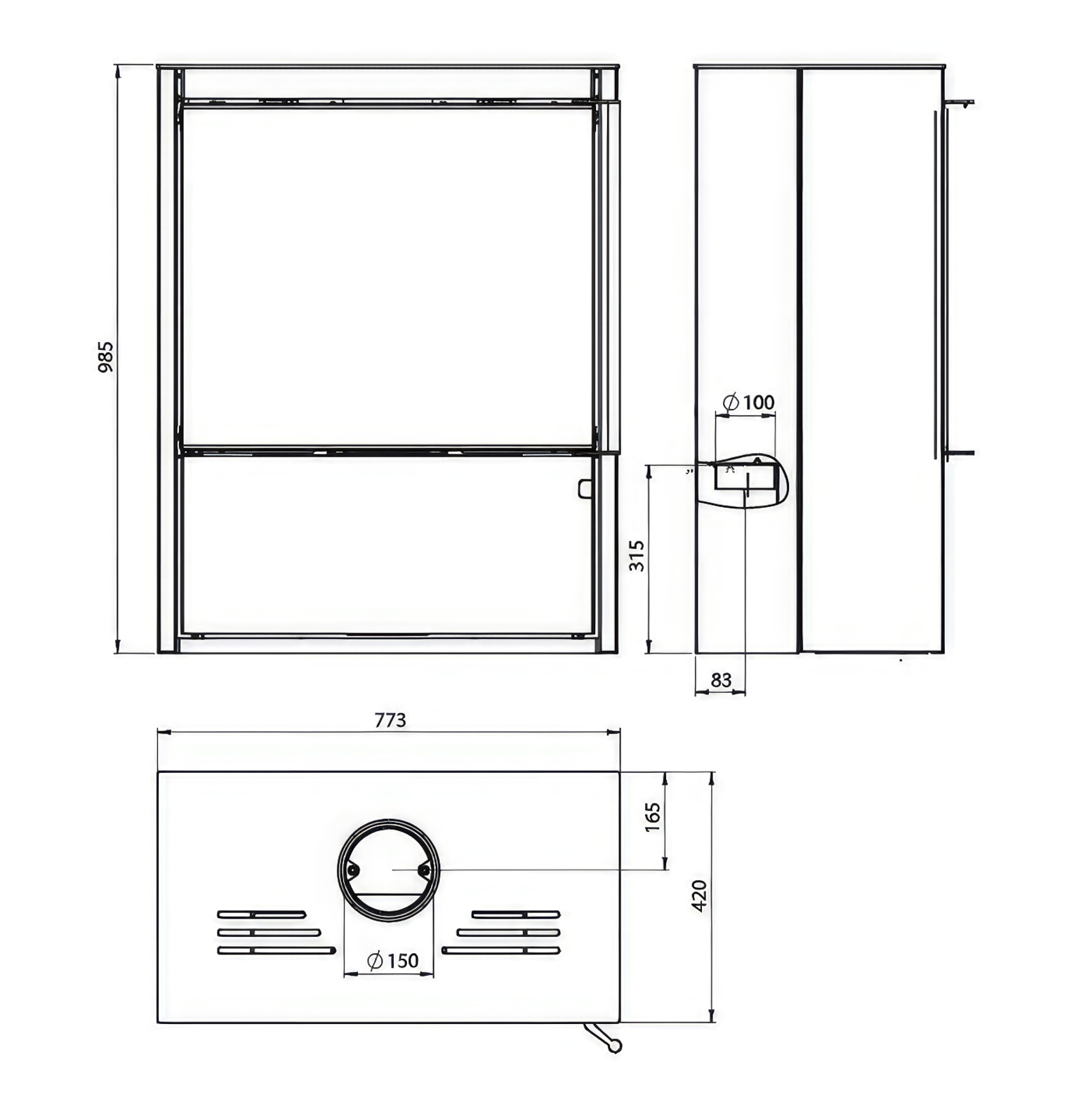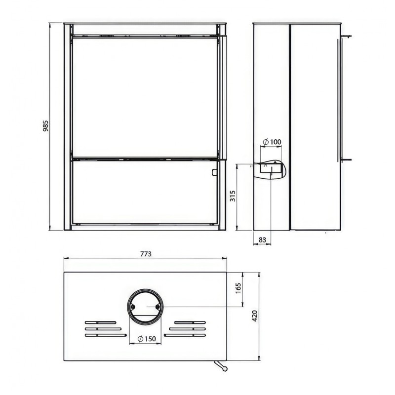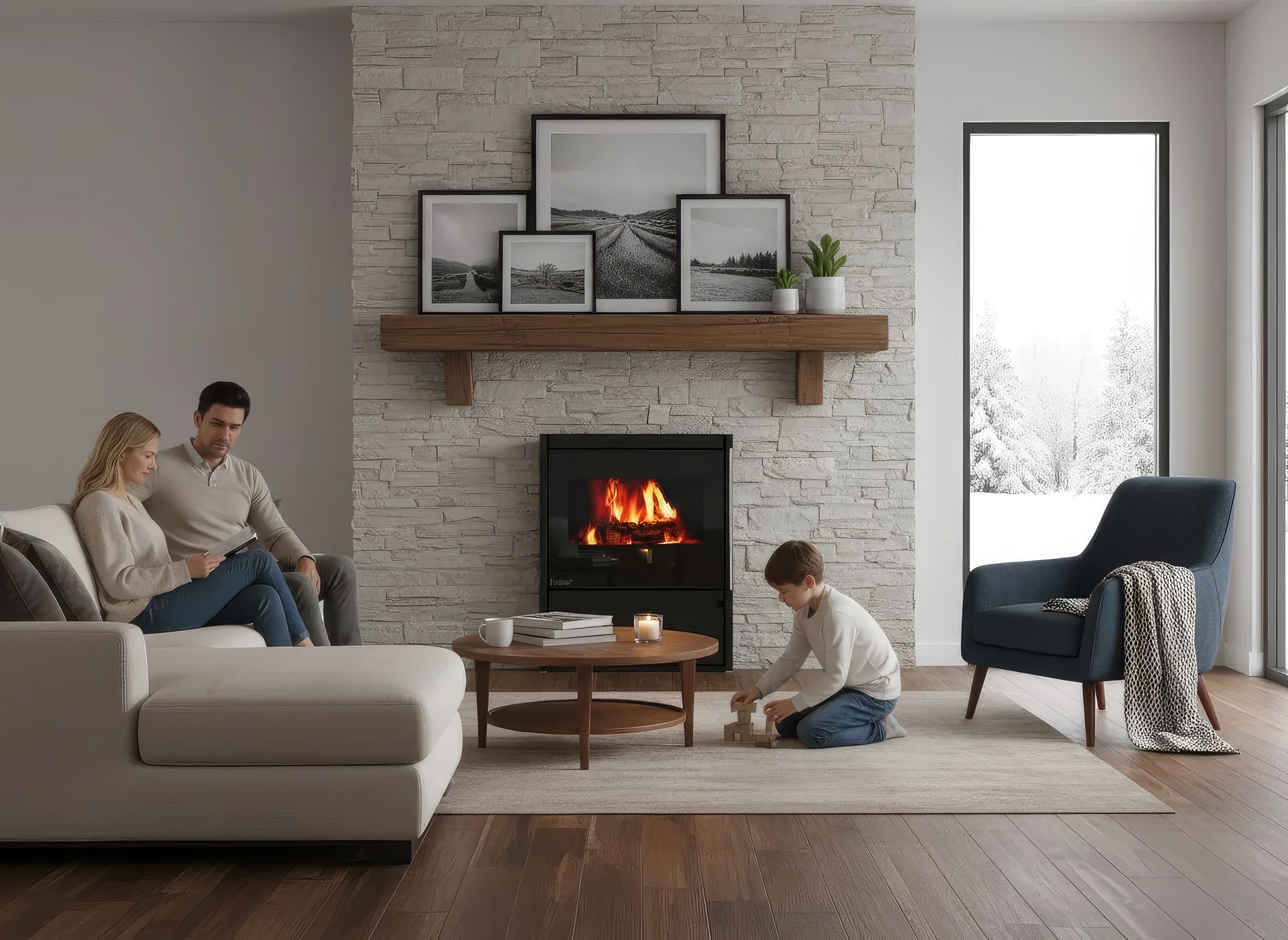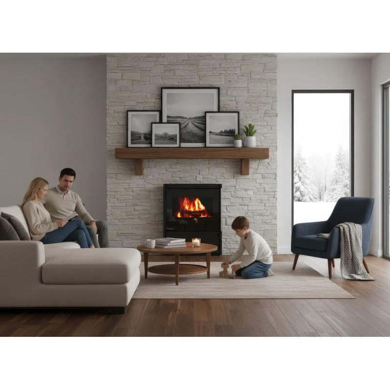 - Эффективный дожиг: Система подачи вторичного воздуха обеспечивает чистое сгорание и высокий КПД (82%), минимизируя выбросы и расход дров.