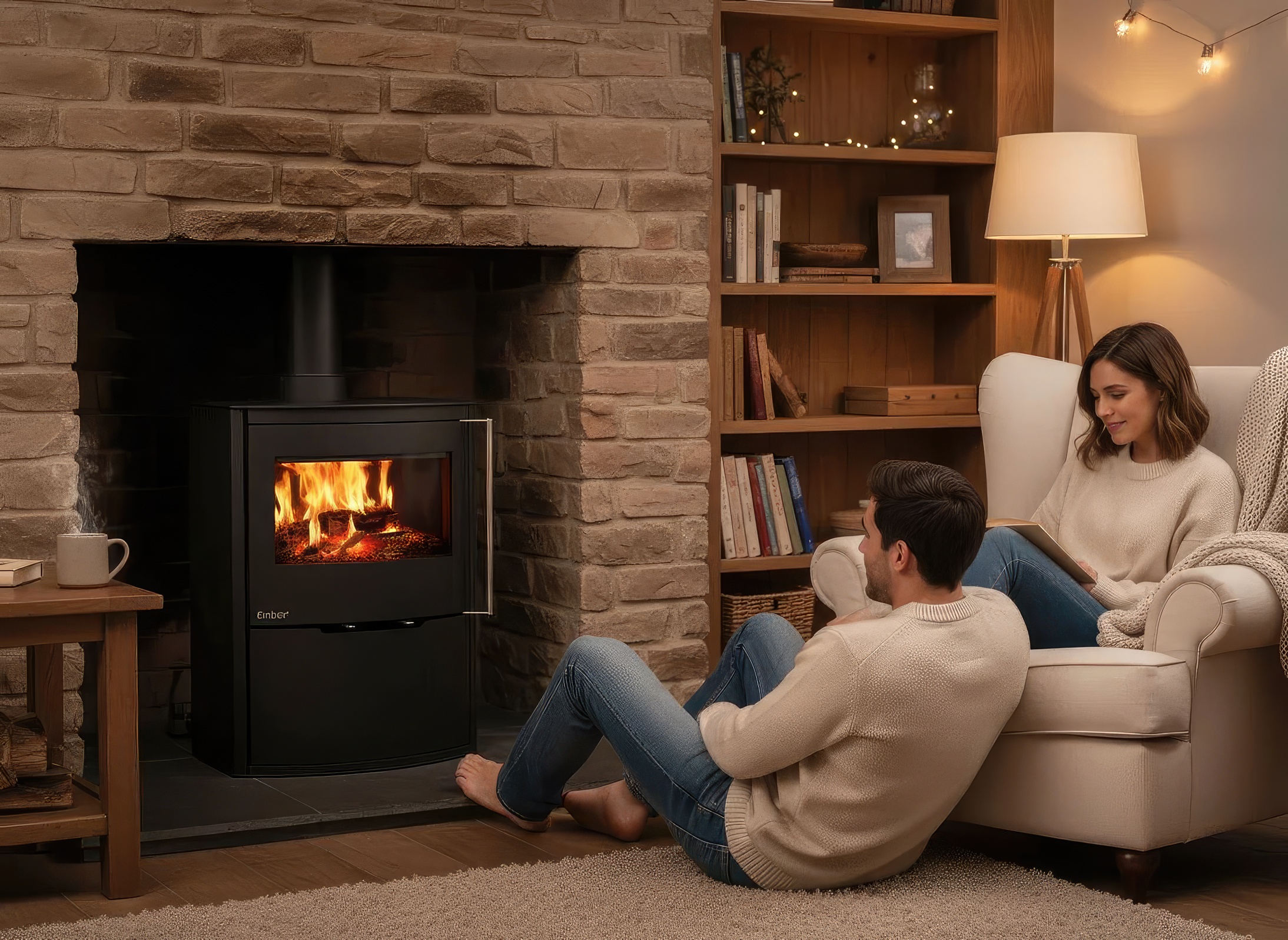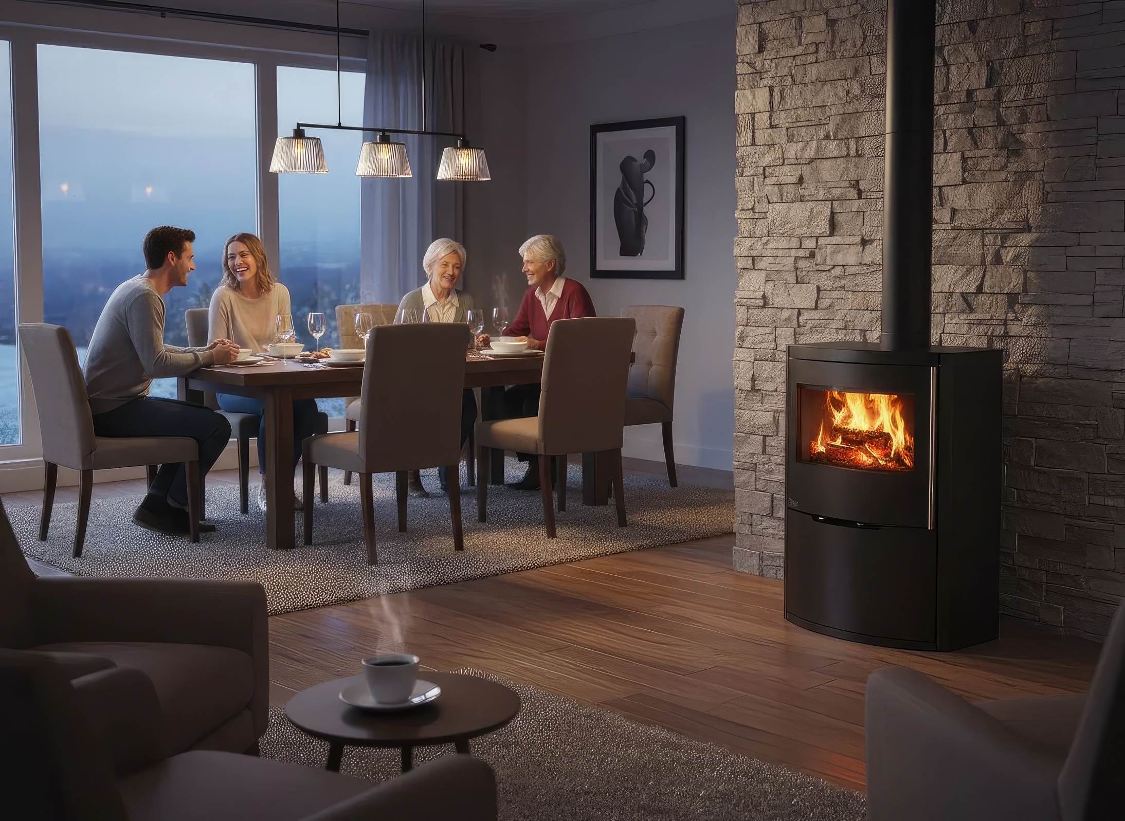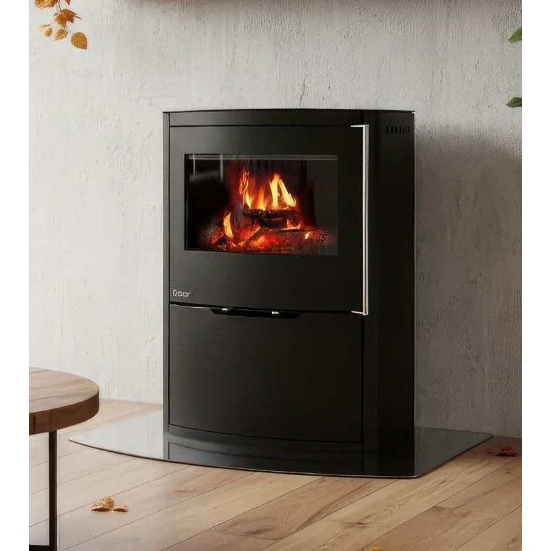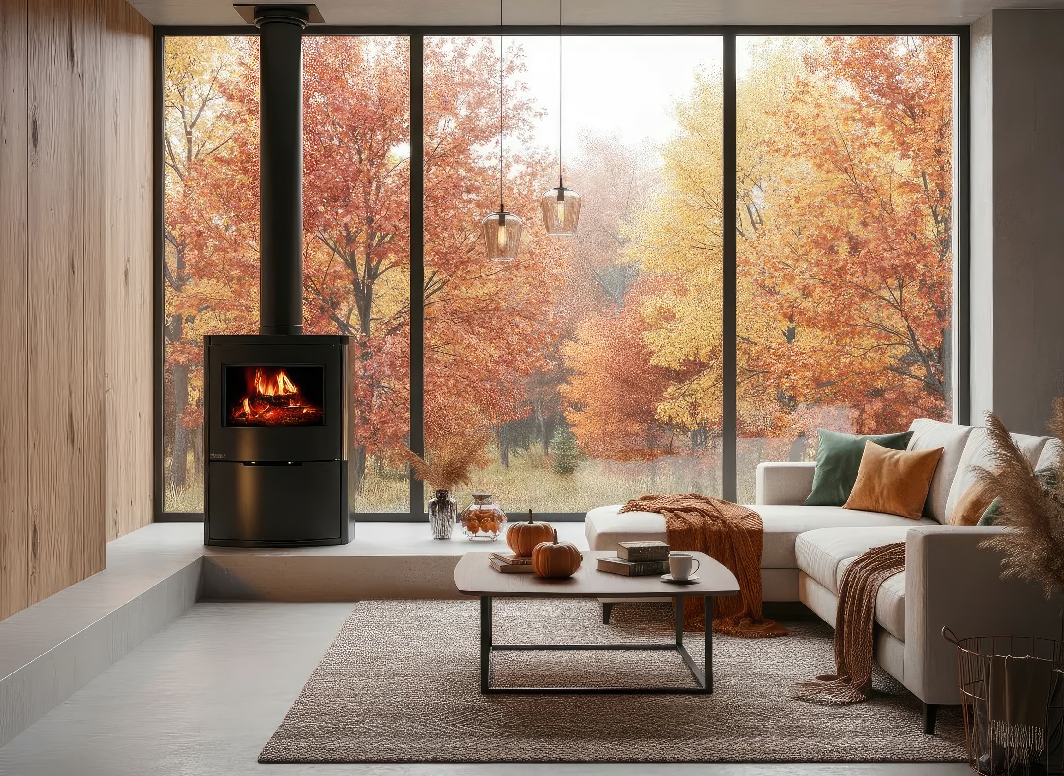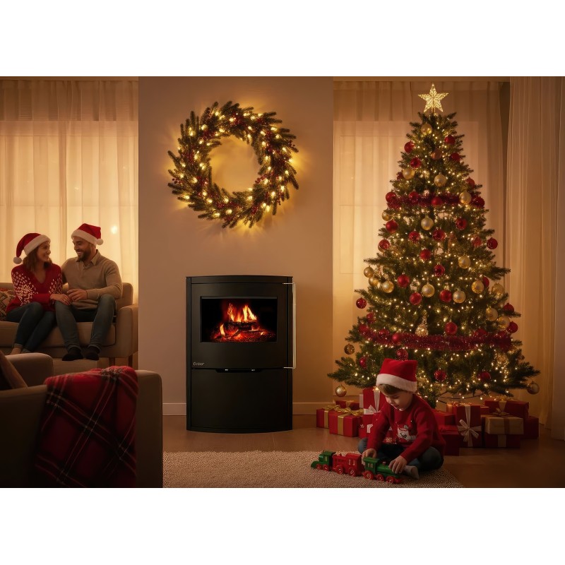 Ember O1 XL оснащена системой внешнего подвода воздуха (CPV), что позволяет подключать забор кислорода напрямую с улицы. Это исключает выжигание воздуха в помещении и обеспечивает стабильную тягу. Внутренняя отделка из светлого вермикулита создает яркий контраст с черным корпусом и способствует полному дожигу газов, повышая экологичность отопления.