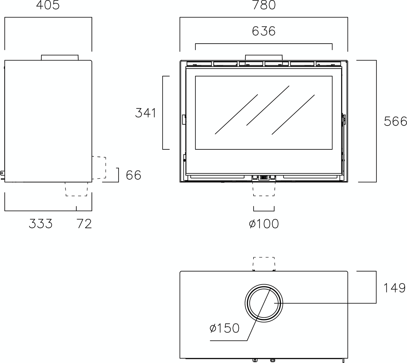 - Диаметр дымохода:150 мм