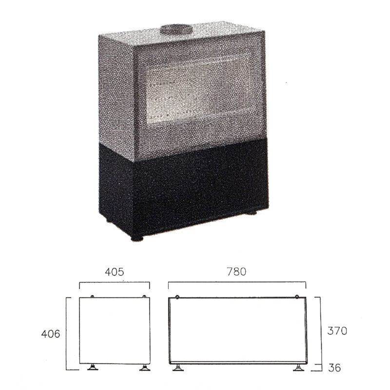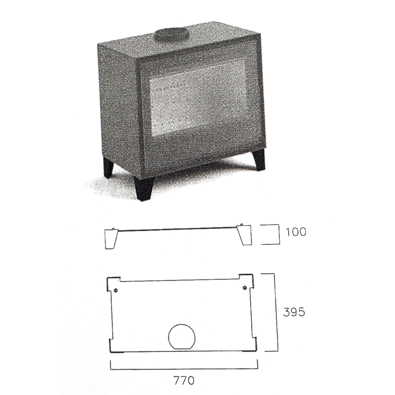 Печь камин LL Calor ATRIA 80 + T — печь из стали и вермикулита без вентиляционного комплекта, с трубой, которая включает в себя: