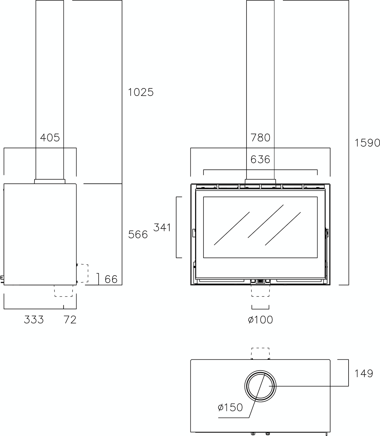 | Высота | 566 мм - без трубы; 1590 мм - с трубой |